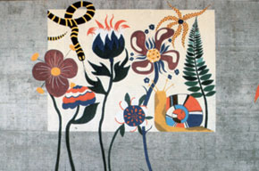 - Wanddekoration zum Thema „Luft, Wasser, Erde und Feuer“ im gedeckten Parkplatz von Aldesago, Werk von Schülerinnen und Schülern der Scuola media (Sekundarschule) von Canobbio und ihrer Lehrerin Gabriella Moresi (Juni 1990).